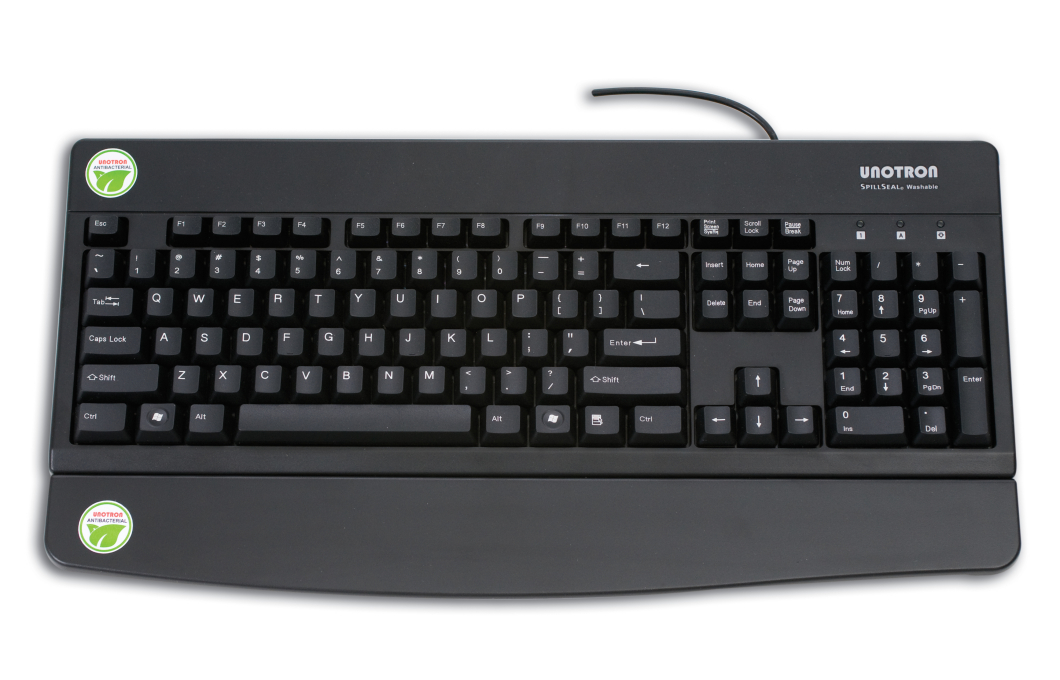 Unotron's patented sealed structure enables keyboards and mice to be washed and disinfected with hospital grade cleaning solutions to prevent cross-contamination from one user to the next