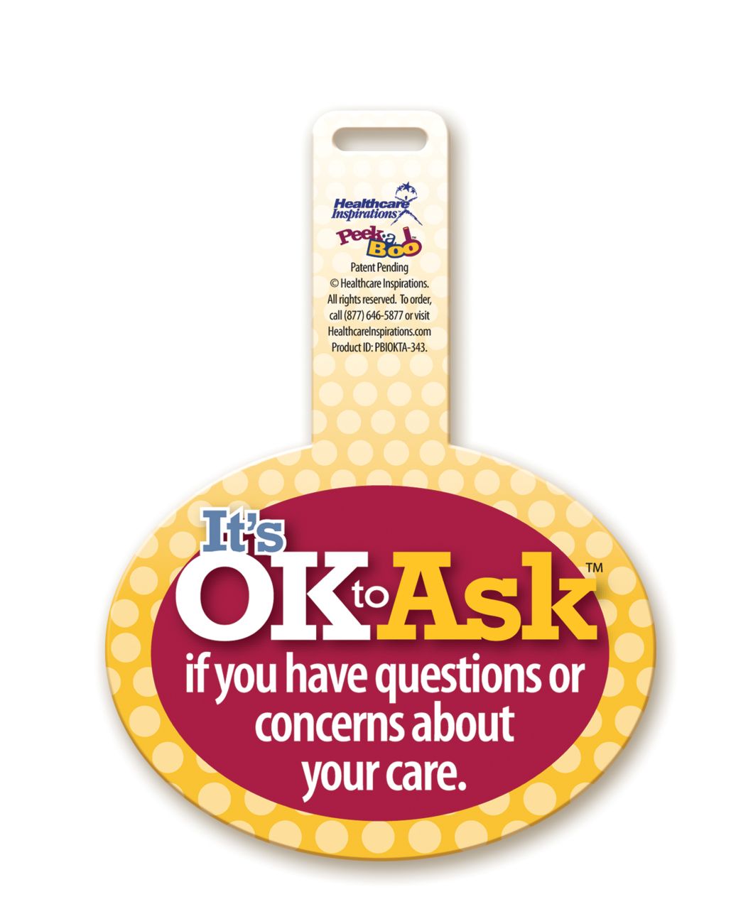 Introducing our newest innovation— Peek-a-Boo™ Cards. Send a bold and colorful message to your patients that It's OK to Ask! About their Care!